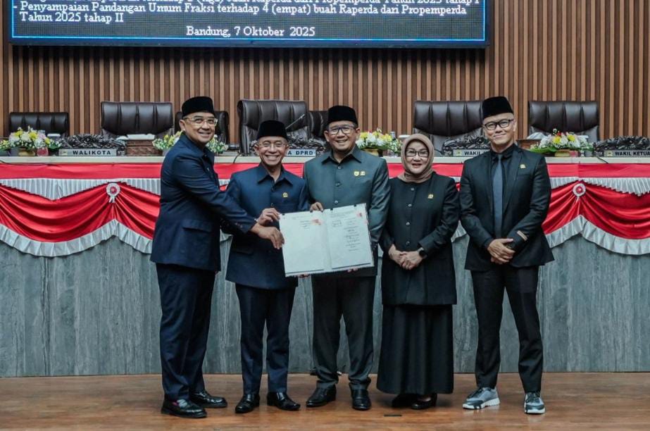 DPRD Kota Bandung menerima empat usulan Raperda dari Propemperda Tahun 2025 Tahap II, dalam rapat paripurna yang digelar Selasa, 7 Oktober 2025. Rapat paripurna ini dipimpin oleh Ketua DPRD Kota Bandung H. Asep Mulyadi, S.H., didampingi Wakil Ketua I DPRD Kota Bandung H. Toni Wijaya, S.E., S.H., Wakil Ketua II Dr. H. Edwin Senjaya, S.E., M.M., Wakil Ketua III Rieke Suryaningsih, S.H., serta dihadiri para Anggota DPRD Kota Bandung. Hadir dalam rapat paripurna itu, Wali Kota Bandung Muhammad Farhan, Sekda Kota Bandung Iskandar Zulkarnain, serta jajaran pimpinan OPD.