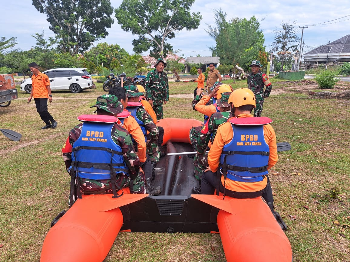 Adapun jenis latihan yang dilaksanakan meliputi penggunaan perahu LCR (Landing Craft Rubber) untuk operasi penyelamatan di air serta evakuasi korban menggunakan tandu di medan darat. Latihan ini dilakukan secara terpadu dan melibatkan personel Babinsa Kodim 0427/Way Kanan bersama anggota BPBD Kabupaten Way Kanan.
