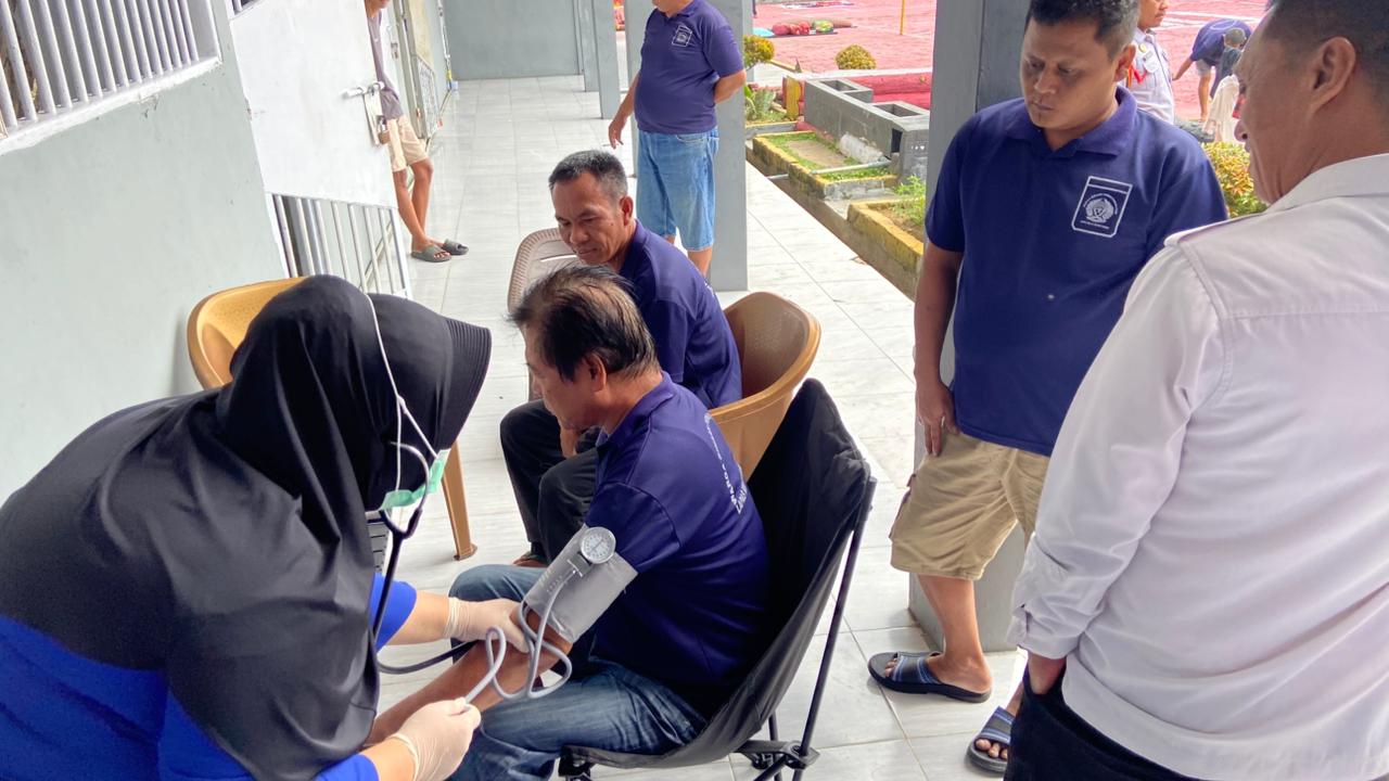 Kegiatan ini mencakup pengecekan tekanan darah, pemeriksaan umum, serta konsultasi kesehatan bagi petugas jaga dan warga binaan.