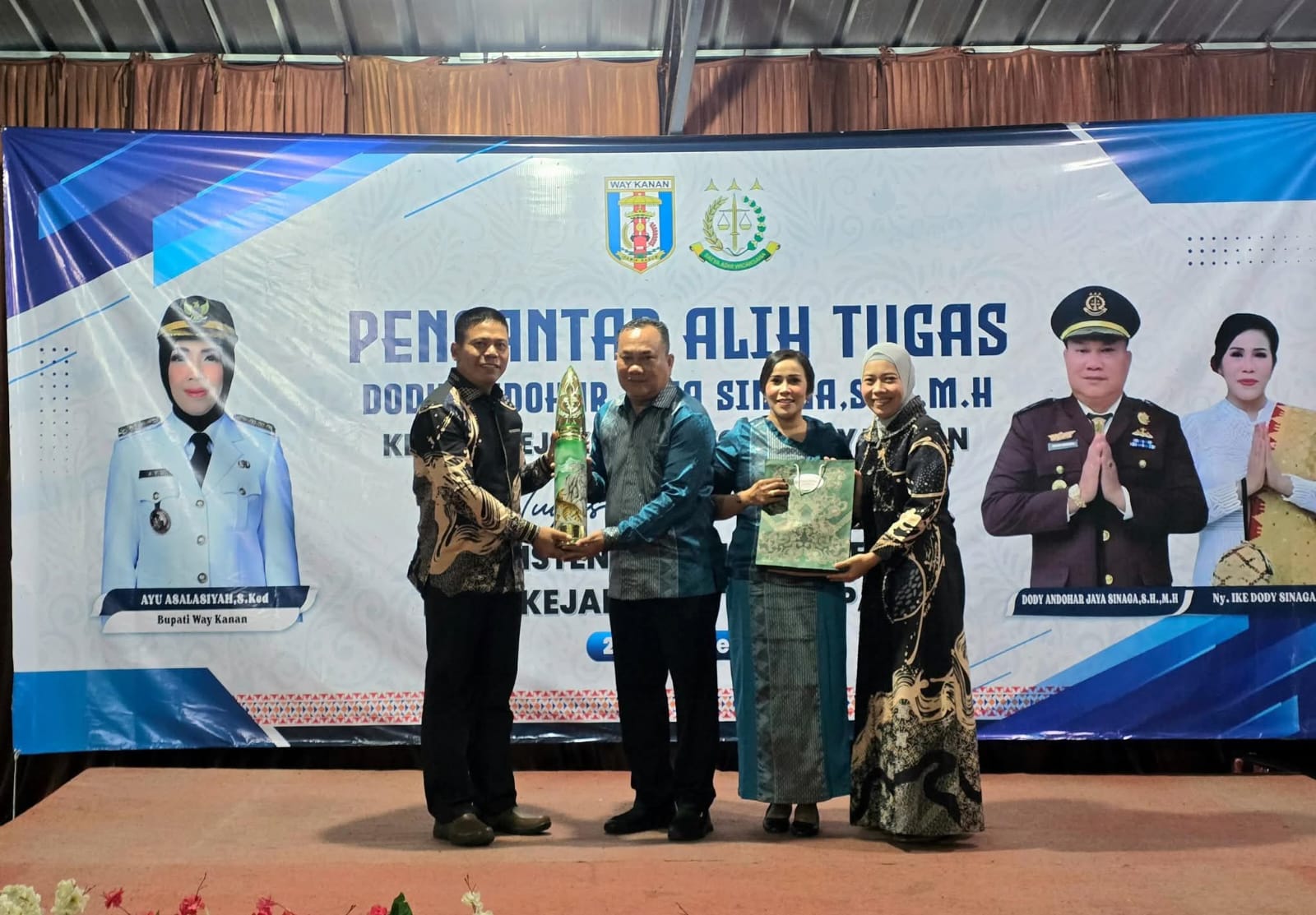 Komandan Kodim 0427/Way Kanan Letkol Arm Sigit Windarto, S.Sos., M.Han menghadiri kegiatan Pengantar Alih Tugas Kepala Kejaksaan Negeri Way Kanan, dari Bapak Dody Andhora Anja Sinaga, S.H., M.H. kepada Bapak Mahmudin, S.H., M.H.. Acara berlangsung pada hari Rabu, 22 Oktober 2025, bertempat di halaman Kantor Kejaksaan Negeri Way Kanan dan dihadiri oleh unsur Forkopimda, pejabat daerah, serta tokoh masyarakat.