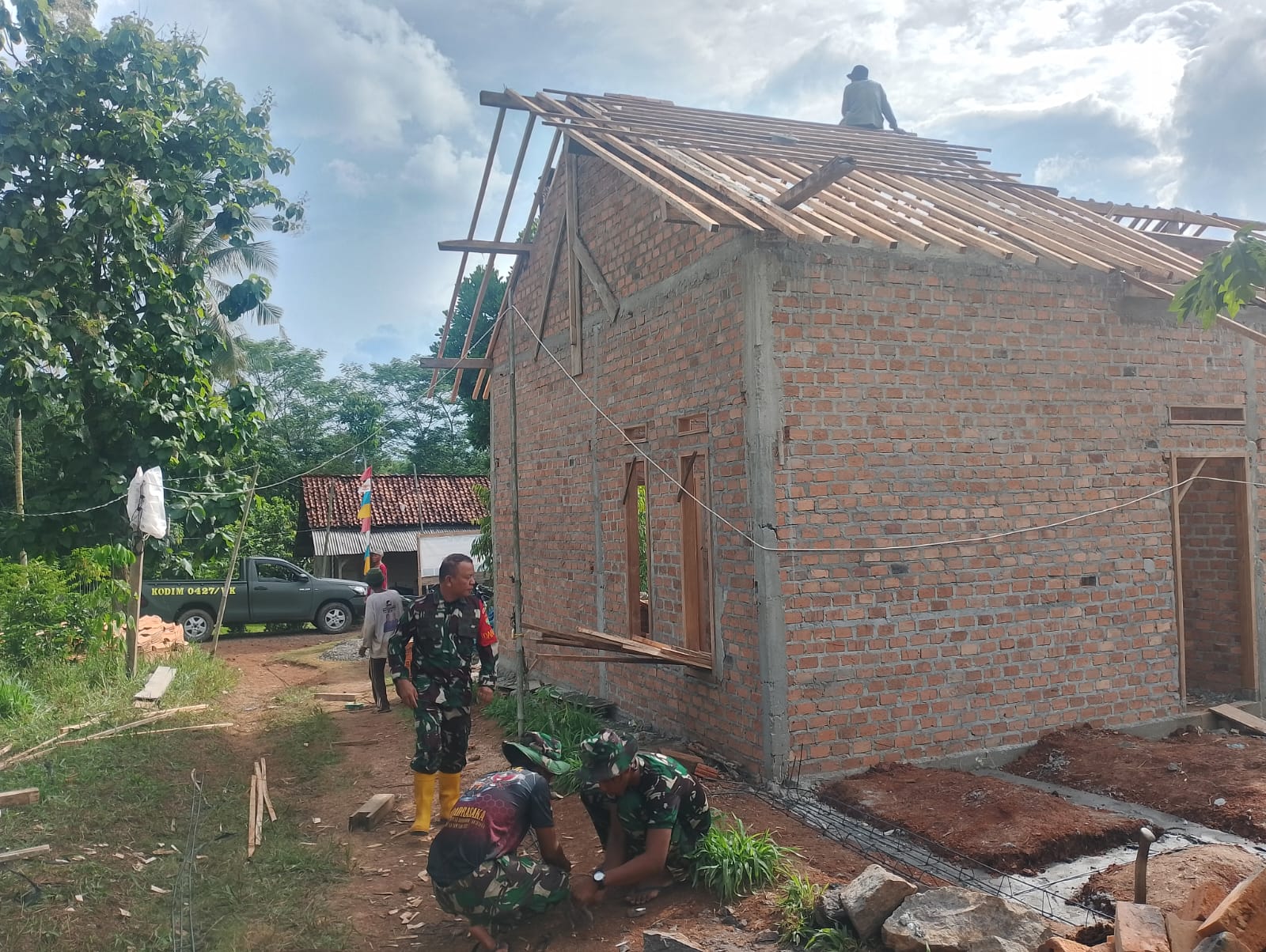 Progres RTLH TMMD ke-126 Kodim 0427/Way Kanan Capai 65 Persen, Pemasangan Kayu Rumah Bapak Parnen Dimulai