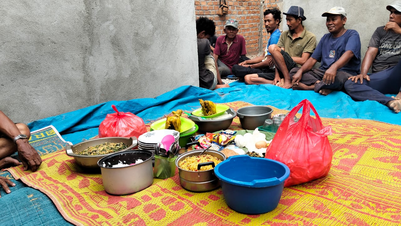 Dalam suasana kekeluargaan, prajurit Satgas TMMD dan masyarakat duduk bersama menikmati hidangan sederhana sebagai wujud kebersamaan dan rasa syukur atas kemajuan pembangunan rumah tersebut. Bapak Parnen selaku penerima bantuan RTLH menyampaikan rasa haru dan terima kasihnya kepada seluruh personel Satgas TMMD yang telah bekerja keras membantu mewujudkan impian keluarganya memiliki rumah layak huni.