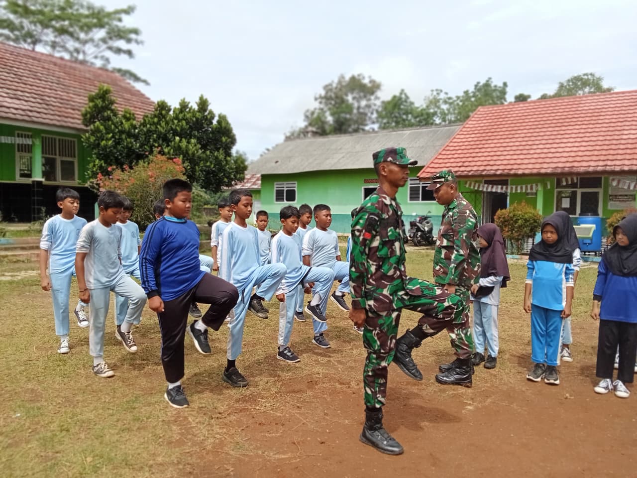 Kegiatan yang dipimpin oleh anggota Satgas TMMD ini berlangsung penuh semangat dan antusiasme. Para siswa tampak berbaris rapi di lapangan sekolah, mengikuti setiap gerakan dan aba-aba dari para anggota TNI dengan disiplin dan ceria.