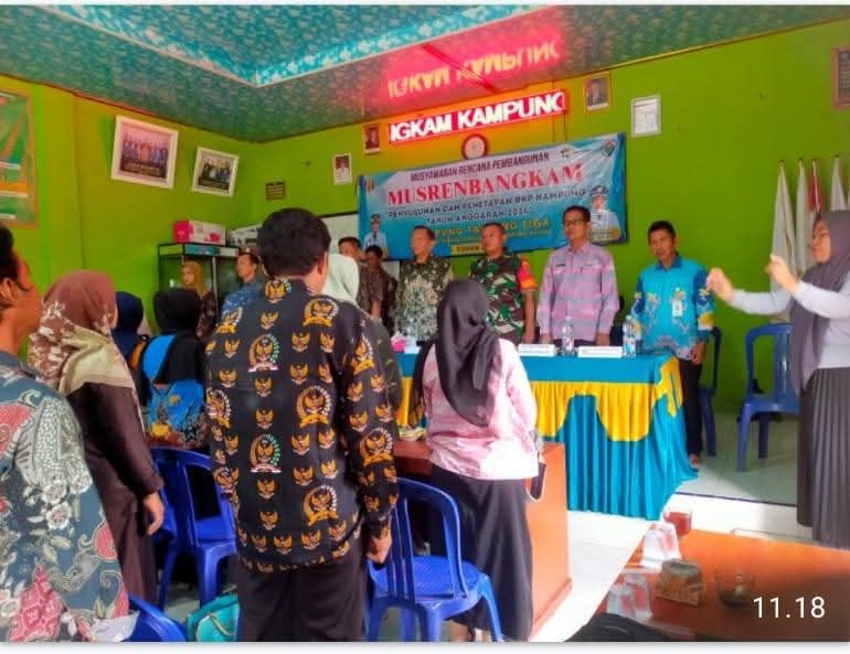 Rebang Tangkas, Kamis 23 Oktober 2025 — Telah berlangsung kegiatan Musyawarah Rencana Pembangunan Kampung (Musrenbangkam) di Aula Kampung Tanjung Tiga, Kecamatan Rebang Tangkas, Kabupaten Way Kanan. Kegiatan ini dilaksanakan dalam rangka penyusunan dan penetapan Rencana Kerja Pemerintah (RKP) Kampung Tahun Anggaran 2026, yang dihadiri oleh Camat Rebang Tangkas Bapak Hapisin, perwakilan Danramil 427-02/Kasui Sertu Hariyanto, serta Bhabinkamtibmas Aiptu Marno bersama perangkat kampung dan tokoh masyarakat setempat.