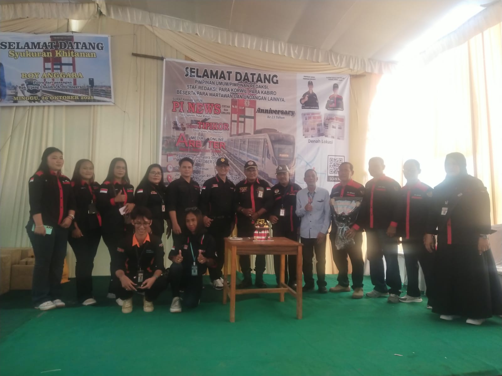 Gebyar HUT Media PI News, Tribun Tipikor dan Arbiter yang ke 23 tahun kali ini dilaksanakan di Palembang Sumatera Selatan Tanggal 26 Oktober 2025. Turut hadir di Acara tersebut, pejabat-pejabat dari Unsur Polri, TNI, Pemda, anggota DPRD, seluruh biro dan Korwil dari 4 pulau yaitu : pulau sumatera ( dari Sumatera Utara bapak Sugito dan teamnya, dari Dumai Riau, bapak Amir Hamzah dan Ibu Rosa beserta teamnya), pulau Jawa, pulau Kalimantan (Bapak Andres dan Bapak Sungut) dan Pulau Sulawesi (bapak Muklis) dan tamu undangan lainnya. Acara juga bersamaan dengan syukuran syunatan Roy Anggara (putra dari bapak Ujang Chandra dan Ibu Anggraini).