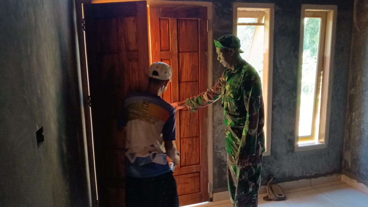 Anggota Satgas TMMD bersama warga tampak bahu-membahu melaksanakan pekerjaan pemasangan keramik dan pengecatan dinding rumah. Warna hijau cerah yang kini menghiasi rumah tersebut menjadi simbol semangat baru bagi keluarga penerima manfaat sekaligus wujud nyata kepedulian TNI terhadap kesejahteraan masyarakat pedesaan.