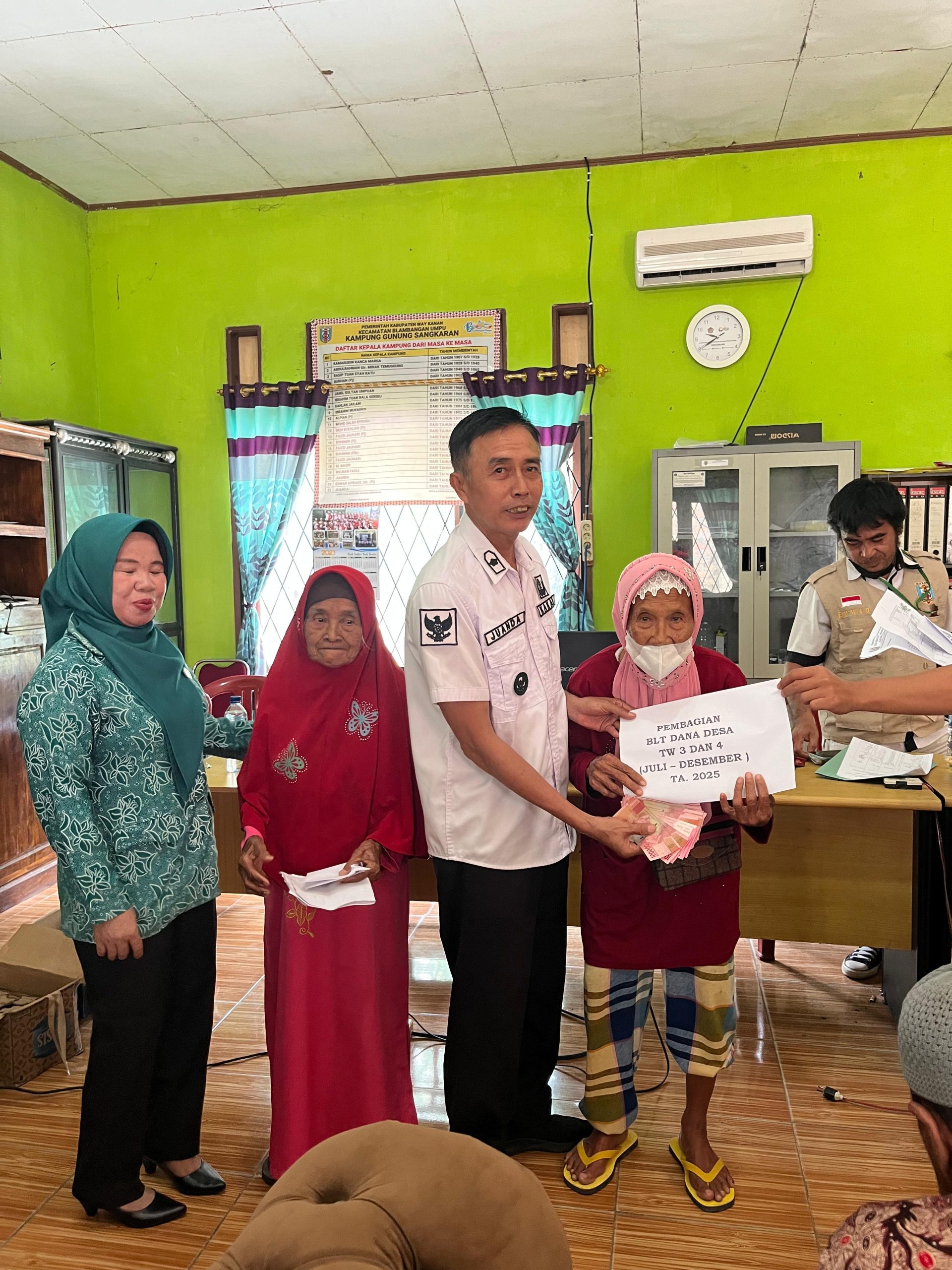 Way Kanan – Pemerintah Kampung Gunung Sangkaran, Kecamatan Banjit, Kabupaten Way Kanan, menyalurkan Bantuan Langsung Tunai Dana Desa (BLT-DD) untuk triwulan III dan IV tahun 2025, mencakup periode Juli hingga Desember 2025.